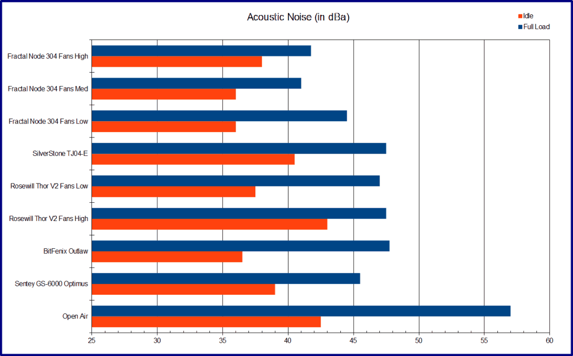 Now we will see now well the Node 304 handles noise the task of noise reduction. This test is especially important as it also directly correlates to the thermal performance. Since my test system was doing its best to maintain that 45°C temperature target, the CPU cooler fan needed to pushed much higher than in previous tests. Lets see how that affects the Node 304 here.