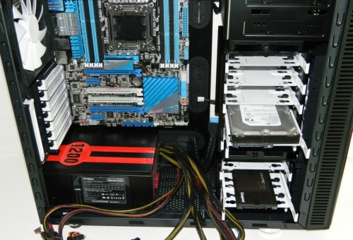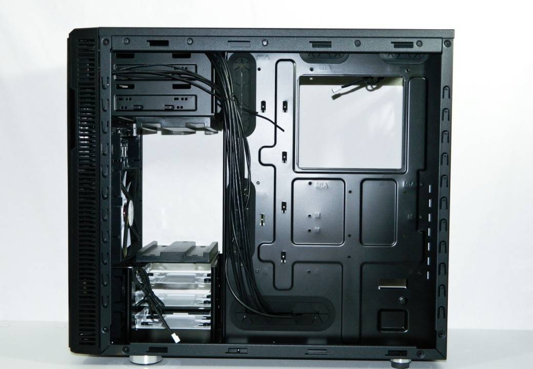 Behind the motherboard tray is about 1″ of space for wire management. This means there is ample space for large cables, making it one of the easiest cases to build a system in while keeping it clutter free. Those pesky 1″ wide and extra thick PSU connectors fit easily.