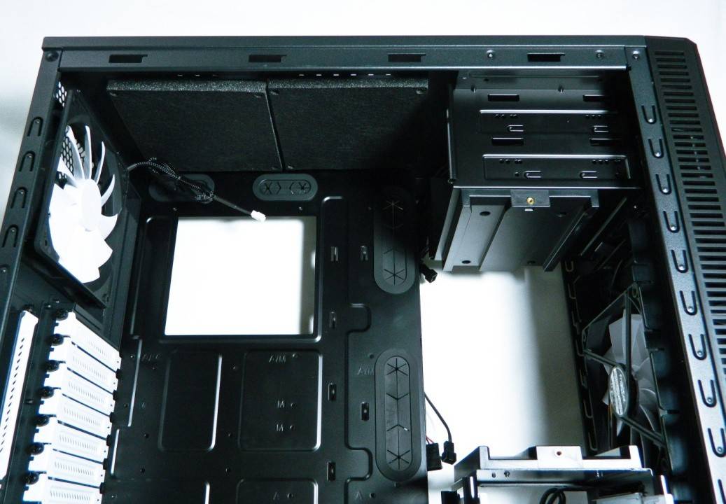 The two top 140mm fan ports use a Moduvent system which is essentially more noise cancelling foam but also seals off the top which helps to create a wind tunnel, ensuring cool air coming from the front reaches the components, then gets exhausted out the back. This is still the most efficient method for keeping things cool while allowing fans running at lower RPMs to create less noise. Unfortunately, the top fan ports only support 140mm fans which kind of complicates attaching more common dual 240mm radiators.