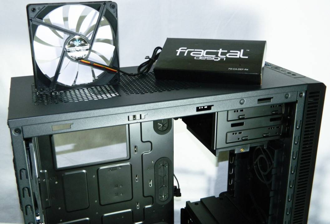 Cooling potential rests in the configuration of the fans. It comes with front and rear 140mm Silent Series R2 fans. They’re rated for roughly 600 RPMs @ 53 CFM (14.9dBA<) to 1000 RPMs @ 66 CFM (18.5dBA). They aren’t quite as silent as some other case fans but they will seem quieter thanks to the enclosure’s sound dampening. Let’s see what else comes with the Fractal Define R4.