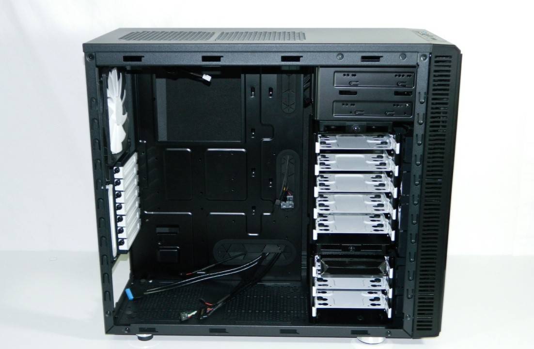 The Fractal Design Define R4 is an extremely attractive and functional enclosure as well, available in jet black, gun metal and white. While the white contrasting parts make it stand out, it’s features like the HDD/SSD friendly trays, motherboard placement, removable tray drive bays, potential for extra cooling, innovative filtering, fan control, and extra wire management space that round off the enclosures impressive features.