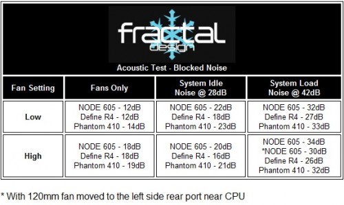 To see how much noise the NODE 605 blocks, noise was monitored with the system idle and loaded down with tasks again and again. An average noise reading was recorded. Keep in mind that the test system is not the ideal system for this chassis. HTPC users typically choose better components to keep noise down.