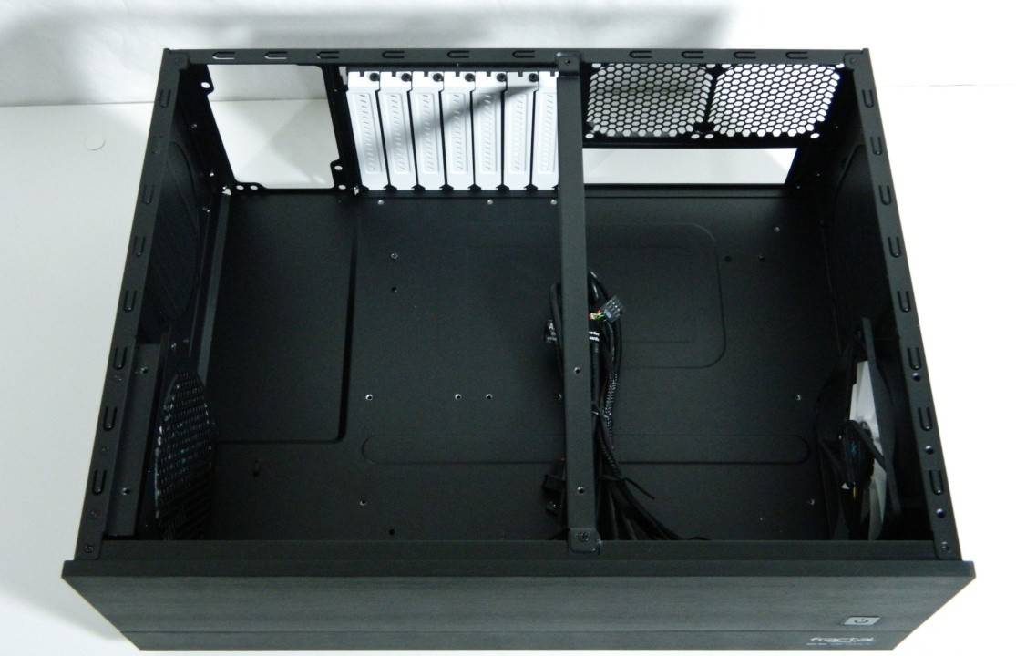 Full size ATX motherboards will obviously fit. However, CPU tower coolers over 5.5 inches tall won’t fit which includes most of today’s top performing coolers. Users will have to stick with the stock (albeit often loud) CPU coolers or move into one of the high end horizontal coolers available on the market. We recently reviewed the Noctua NH-C14 horizontal CPU cooler and it’s quite excellent, but an all in one liquid cooling system like the ASETEK 510 to 570LC, Corsair H40 to H80i, or the Thermaltake Water 2.0 Pro and Performer would also be good options as well.