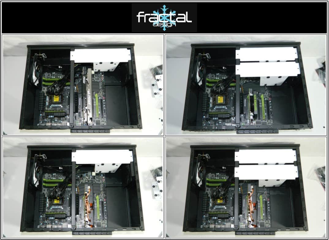 - 280 mm in the top four ATX expansion card slots with one hard drive cage mounted, containing one 3.5″ HDD and one 2.5″ SSD