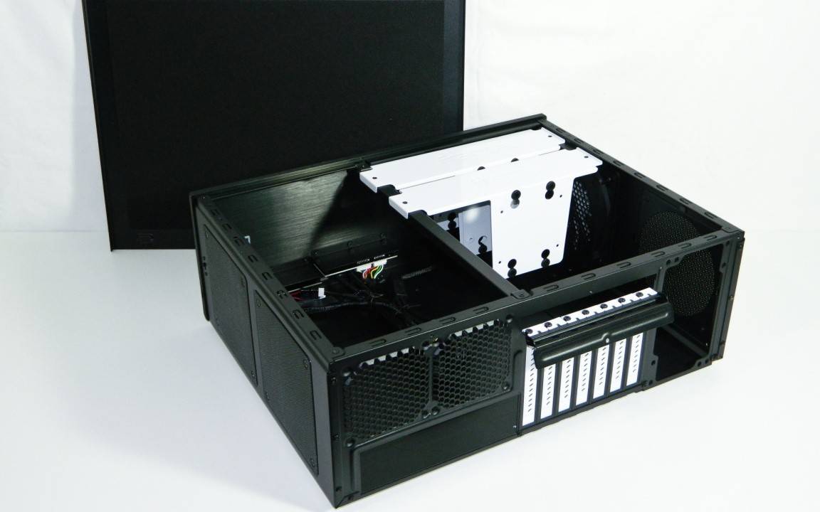 If you want the system for more than playing back videos and music, a video card such as a GTX 660 Ti will fit nicely with one drive bay installed. Otherwise, a GTX 650 Ti will fit without removing anything. A standard PSU will fit without issue. This deserves a section of its own so we’ll cover that in our installation notes in more detail.