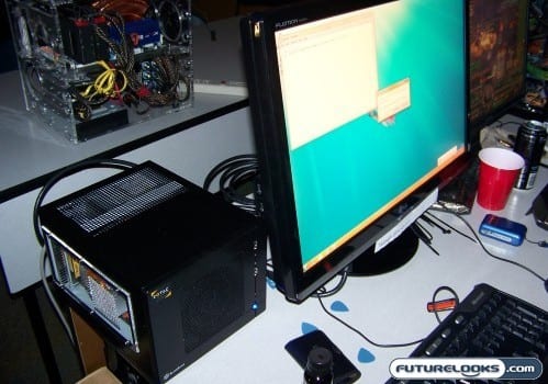 Underneath the Silverstone SG05 Micro-ITX Chassis was an Intel Q9550 Processor, 4GB PC2-6400 Patriot Viper Memory, Zotac 9300 ITX WiFi Motherboard, and Zotac 9800 GT 512MGB Synergy Video Card. Storage duties were provided by a Western Digital Velociraptor 300GB 10K RPM SATA hard drive. This was all fed by an FSP 300 Watt Power Supply. For sanity’s sake, I dubbed it the “Zotac 93X” since it’s easier to say that than the entire name of the board, especially when people keep asking you.