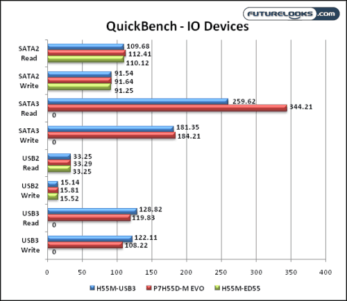 As you can see, the EVO board moves the most data at the top end probably in part to the Bus management. However, write sequential rates were very close to the USB3 board. Unfortunately, the ED55 doesn’t offer SATA3 (6Gb/s) or USB 3.0 which could be a questionable choice. It also further pushes it down the performance ladder as a distant third in overall performance.