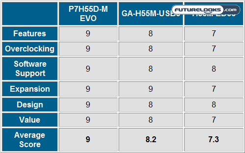 Futurelooks H55 Micro ATX Shoot Out – Overall Score Card