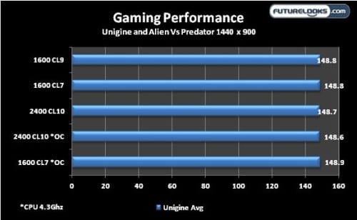 Memory frequencies alone had no effect on the frame rates. The video cards are doing all the work. Depending on the game title, overclocking the CPU can typically creates some gains. If you’re just gaming and have no plans to push your CPU and memory in unison, you’re better off buying some TridentX 1600MHz memory, and saving the money for another game title.