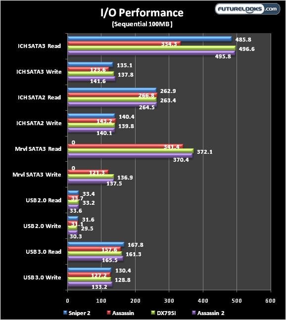 One of the things I didn’t completely cover in the Intel Sandy Bridge-E X79 launch article was a detailed look at input/output performance. If you’ve seen one USB or SATA, you’ve seen them all right? Well, that’s not the case this time around. The X58 and Z68 platforms use ASMedia, NEC and/or Marvell. However, the Assassin 2 use updated Marvell SATA3 and Fresco USB 3.0 controllers. Here are the interesting results.