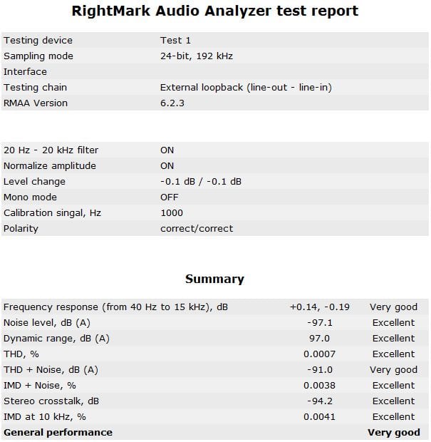 RMAA is a handy tool for revealing the quality of most any audio card or integrated audio processor. The Creative Labs X-Fi 20K2 audio processor integrated in to the Assassin 2 fits right in to the test. Let’s take a look at the test results of the 24/192Hz report (click to make it larger).
