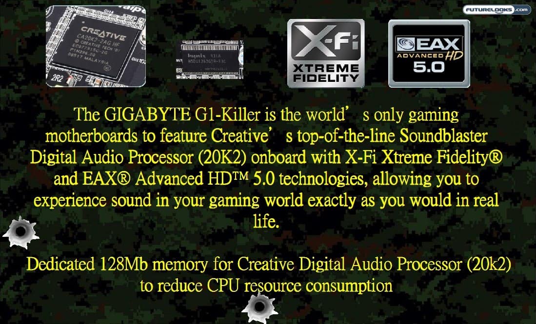 As you can see in the video above, the layout of GIGABYTE’s top of the line G1-Assassin harbours features very much geared towards gamers. From the enhanced audio (Super Hearing) featuring Creative Labs CA20K2 Sound Blaster X-Fi digital processor to the board’s “Super Sight” which gives a nod to the boards 4-way ATI CrossfireX and 3-way NVidia via the four PCI Express 2.0 slots, this board is all about enhancing the gaming experience. The best quality sound allows you to hear your opponent well while the best possible frame rates ensure smooth game play whether you are an nVidia or an AMD fan.