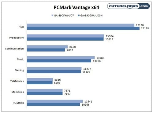 Not surprisingly, the two boards perform very similarly with only a few points difference. This is not surprising considering that the 890GX and 890FX share a lot of similarities except for the integrated graphics.