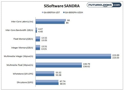 For the most part, memory and CPU performance metrics between the two motherboards and chipsets are pretty much identical and the differences are too small to be significant. Again, not unexpected considering how much similarity there is between the two chipsets.