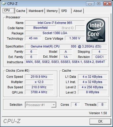 - Intel I7 965 3.2GHz Processor