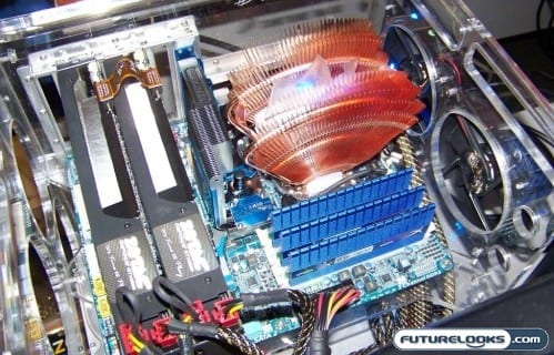 Granted, water cooling tends to look extremely cool if configured correctly. But, as you can see, the heat sink doesn’t look bad at all. It’s just slim enough that it won’t encroach on the video card too much and it blends in with the theme very well. Personally, I just love a well thought out cooling concept that works.