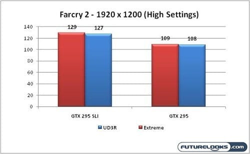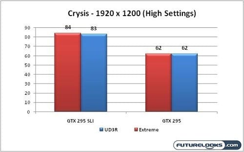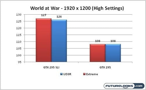 Again, there’s a slight performance gain in favor of the Extreme due to the aggressive configuration. Also, the Extreme has the ability to operate three video cards versus just two when compared to its sibling, the GIGABYTE UD3R. nVidia’s drivers have improved a bit over the last couple weeks for more than just Vantage. On to the games!