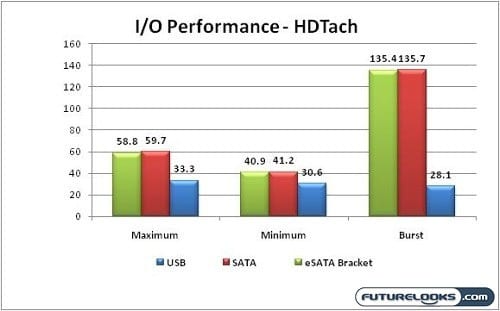 Working with the latest drivers and BIOS seems to offer better results on the SATA II drives. The average improved a few Megabytes per second. It’s nothing like we’d expect from an aftermarket RAID controller. But, it’s more than enough for standard system operations.