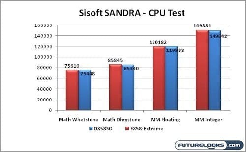 Sisoft SANDRA is a great benchmark program. It helps you compare your own system’s performance to other comparable systems. In this case, we pitted the EX58-Extreme against it’s reference INTEL EX58 sibling.