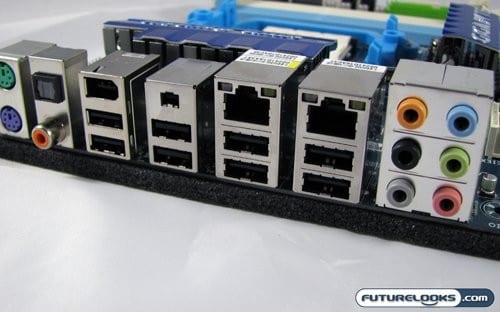 Though GIGABYTE has removed most of the legacy ports, they haven’t rid themselves of all of them on the MA790FXT-UD5P. Thankfully they’ve retained the PS/2 ports on the back panel. This is a good thing, as there are still good keyboards and mice out there that use the PS/2 port, and it is the most reliable form of peripheral connector. As for the rest of the ports, as I mentioned earlier there are 8 USB 2.0 ports and 2 FireWire ports present. You’ll also find 2 network ports on the back panel. GIGABYTE even setup the full connector suite for a 5.1 surround system, including optical and coaxial digital out.