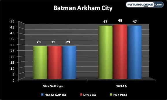 Again, super close frame rates since it’s all GPU performance being measured here. The CPU doesn’t hold it back at all and most importantly, neither does its sub $90 price point going up against boards that are nearly twice the price. The sweet spot is limiting the multi-sample settings to keep things smooth. But if you have a high end card, turn up the settings. The board will handle any card even without additional power connectors.
