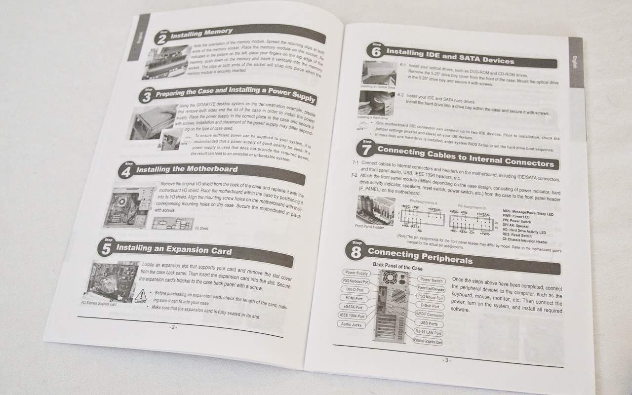 The multilingual quick installation guide is very basic. Far too basic and generic in my humble opinion to be of use to any user working with this specific board. There is already a section of the manual that covers installation in far greater detail, and overall, it does seem very well written, albeit a bit generic. We actually followed the instructions laid out in the setup section in the main manual to assemble our system, but I couldn’t help but get the feeling that they were written for someone using an open test bench or a even on top of the motherboard box. While this is fairly common in a test lab, this isn’t helpful to someone building their system into a case, which is a much more common scenario.