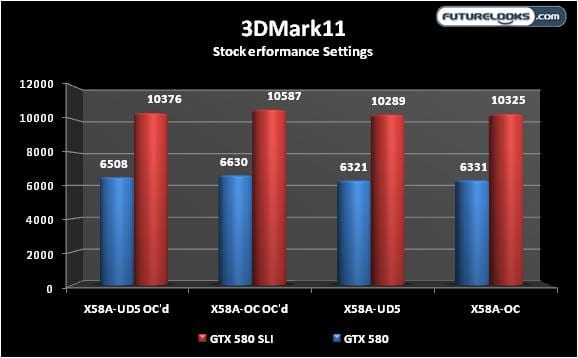 Next, I applied a solid 1.5 volts VCore with the least amount of voltage droop and a slight PLL/VTT increase. The result was 4.8GHz on the X58A-OC and 4.6GHz with the UD5. Again, the results were the same regardless of the cooling method. This tells us the OC board is definitely better tuned for frequency scaling. Of course, each board could take the CPU a little farther in some benchmarks, but neither were quite 3DMark11 stable using this locked voltage.