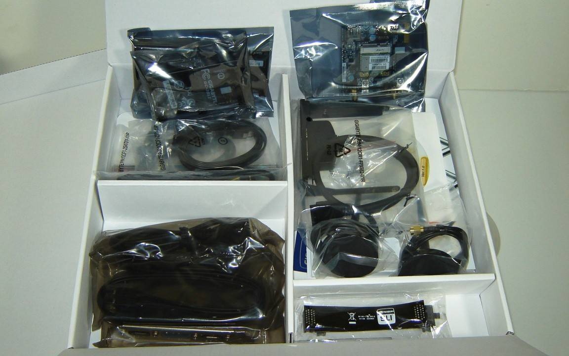 As for the GA-X79-UD7, it’s anything but entry level. It includes almost double everything in the UD3 bundle except for the 4-way graphics bridge. There’s also an extra 3.5″ USB 3.0 bracket and the Bluetooth 4.0 Wi-Fi card. Two stand alone antennae are meant to be used with the card for connectivity. The nice thing about the antenna is that they use ring-nuts to connect to the BT/WF card which makes for a better connection and signal for sustaining bandwidth. Rounding out the rest of the UD7 bundle are more manuals and the driver disc.