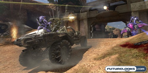 The vehicles follow the same general philosophy as the guns. Take the best of the previous games, change it a bit, and throw in a couple of new surprises. The wraith has it’s normal boom cannon with an added turret for a buddy to ride along in. The ghost is its typical sweetness as is the banshee. The main new additions are the mongoose, the brute chopper, and the elephant. The mongoose is basically a suped up ATV that has “cap that flag” written all over it. The brute chopper although cool in theory doesn’t quite pan out. Control difficulties and a weapon that has a bark much louder than its bite make this vehicle fairly ineffective. The Elephant can only be found in Sandtrap (a multiplayer level). This vehicle is a slow heavily armored assault vehicle. There are a couple of 50 cal turrets on the either side of it as well as a launch bay with a mongoose for quick departures. Whether it is its team orientation, or its similarity to the GI Joe toys of my youth, the elephant is major fun.