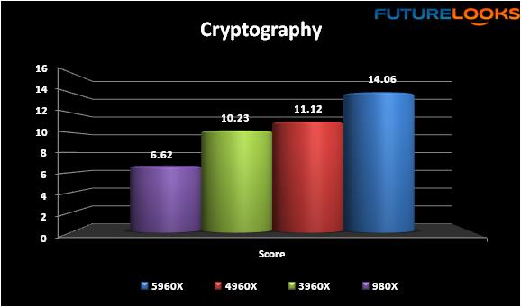 Only the hex and octo-core processors are shown above. While frequencies and core counts seem to be the MVPs of the benchmark, it’s also the latest instruction sets that give the Core i7-5960X a very strong cryptography score.