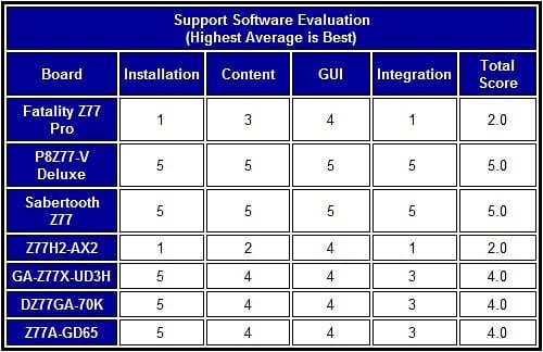 As part of the value, manufacturers often include a program, or several programs, that automatically install all the necessary motherboard drivers and tools which makes set up very easy. It also includes some useful utilities, some optional and some gimmicky software. Each manufacturers bundle was evaluated. The more integrated, organized and pertinent, the better.