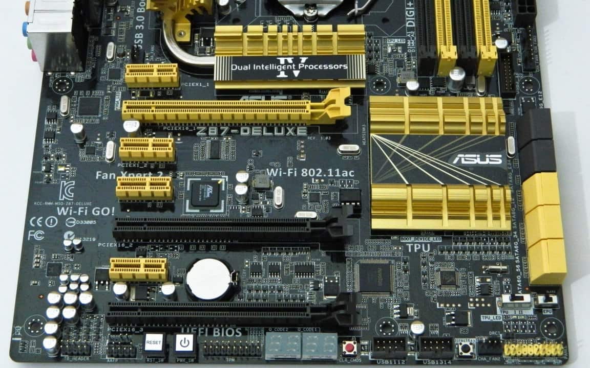 Straying from the safe and conventional design themes is the ASUS Z87 Deluxe. The channel series theme is now anodized gold on black, all the way down to their Z87 Mini ITX series. Some of the expansion slots are just a shade different but ASUS made a careful calculation in terms of what enthusiasts or mainstream users wanted in a board design. I’ve seen some immaculate system designs like the MurderBox shown off at LANcouver 2013 which proves there are plenty of possibilities.