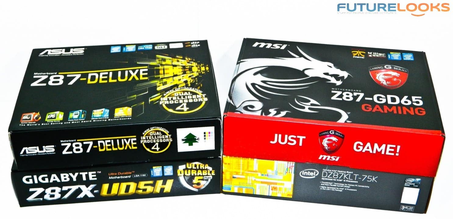 We took three competing Z87 motherboards currently available at different price levels and literally beat them silly in the lab for several weeks. We learned a great deal about each partner’s platform quirks, benefits, personalities, and the features each offers. The three motherboards in question are the ASUS Z87 Deluxe, GIGABYTE GA-Z87X-UD5H, and MSI Z87-GD65 Gaming. With the new Z87 chipset, each board has new learning curves, software, and some even have a completely redesigned UEFI BIOS. It’s time to see which one will get your money’s worth in our latest Z87 Motherboard Round Up!