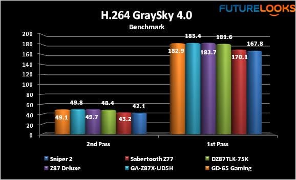 Graysky is another far more serious media transcode benchmark more indicative of people who like transcoding much larger pro level video. In layman’s terms, converting 1080p video over to more easily viewed and stored 720p video goes very, very quickly even if it’s a 2GB video. Again, the trio keep up with each other.