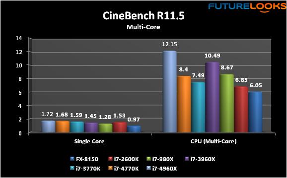 The Core i7-4960X loves the 1866MHz memory. The threads are very helpful in helping the system finally break 12 points without having to overclock massively. This is also a good indicator that the Ivy Bridge-E is going to be a good chip for multimedia fiends or individuals and apps that simply need that many threads.
