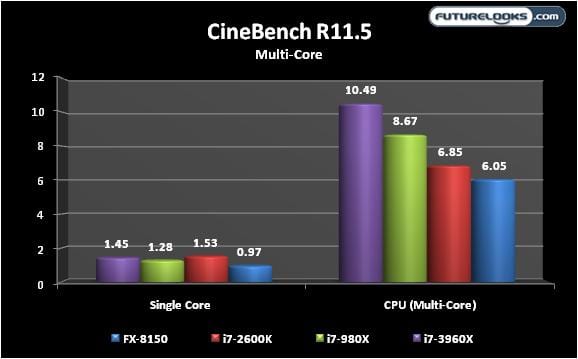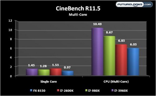 I wasn’t really expecting the 3960X to walk all over the 980X and it didn’t. In this benchmark, the number of CPU cores and test components directly influence the results. Since both are hex-cores, the results makes sense. The poor FX-8150 just falls flat compared to the Core i7 series.