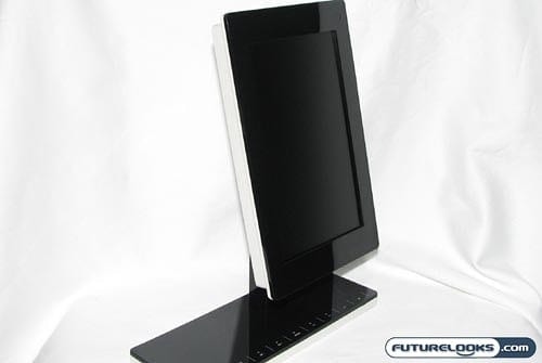 The picture quality is quite good and I’m a big fan of the overall aesthetic. The unique assymetrical design, placing the “stand” portion on the right side, adds a big dash of style and the great glossy finish adds a little touch of prestige. I would have preferred if the entire body was black to match, rather than having a white back.