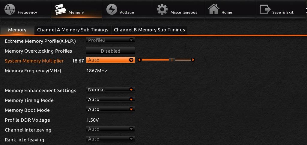 Above, you can see that the XMP profile option is grayed out since the PnP memory doesn’t have XMP profiles. Your board and memory should default to 1866 MHz. Occasionally, a board might default to the Intel default 1600 MHz. If this happens, you can still set the frequency manually in the BIOS. Both methods were tested and the memory worked great. By PnP design, the Kingston HyperX Fury found 1866 MHz along with the correct 10-11-10 timings on our GIGABYTE GA-Z97X-UD5H quickly with a single boot.