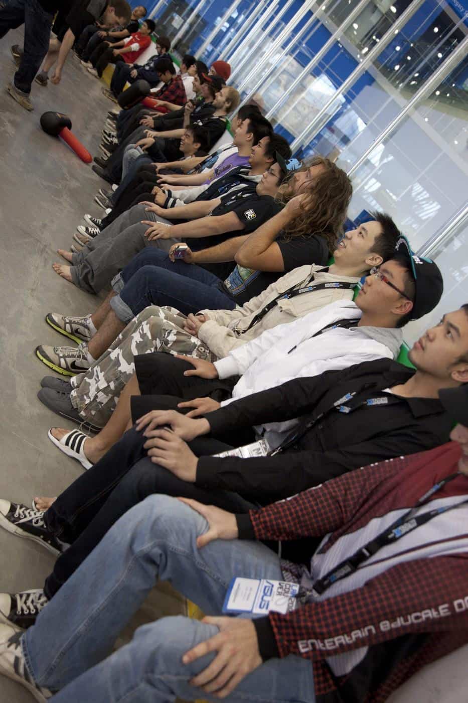 With time running out and the end of LANcouver 2012 just a mere hour away, we had to figure out some way to expedite the challenge. So with the help of the entire ASUS ROG Event team, we brutally enforced the wall-sitting rules, leaving no more competitor harassed. The form had to be “Persistent Perfection” as Steve Kofoed of ASUS came around with the ban hammer, knocking down any competitor that couldn’t keep their form or deviated from generally accepted wall sitting practices. This lead some people to tumble over in agony. Some even cried.