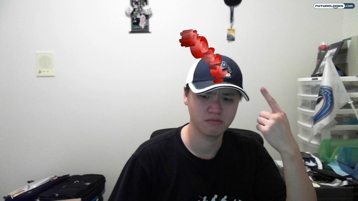 The software automatically tracks your face. There are effects that make for buggy eyes, alien-like proportions, and so on. Or, like you can see above, the software can add hair, hats, and other accessories. Some of them work better than others. The afro wig didn’t really re-proportion itself properly for my head, as you can see above.