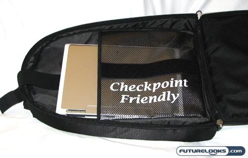 The Mobile Edge ScanFast Backpack’s main appeal, of course, is that it has been designed to expedite the process of getting through airport security. You do not need to remove your notebook from the backpack when you go through the X-ray scanner, just as with the similarly TSA-compliant Targus Zip-Thru Corporate Traveler and higher end Tom Bihn Checkpoint Flyer. The laptop is contained in a separate section and you open up the bag like giant book, laying it down flat on the conveyor belt.