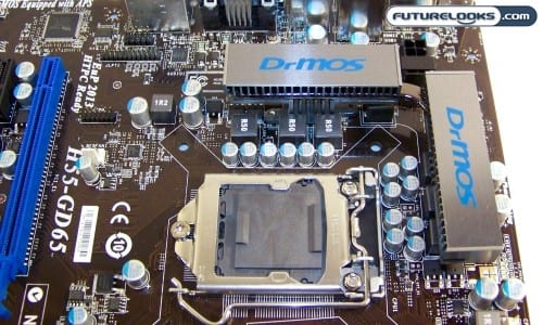The H55-GD65 credits its stability to DrMOS which is MSI’s Phase PWM that cleans up electrical noise that can interfere with your overclocking success. Engineers believe that a single DrMOS Phase is better than a conventional MOSFET 4-Phase. APS (Active Phase Switching) also helps to manage power when the system needs it and saves power when you don’t. Based on experiences with their P55-GD65, we’re inclined to agree with the MSI engineers.