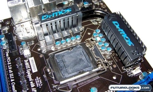 MSI has invested a ton of money into these little components that combine three PWM components into one (two MOSFETs and an IC). By combining these components into one part, there are fewer parts used which produces less heat than competing designs. Normally, these components would heat up quite a bit, especially when overclocking. However, with DrMOS in the house, the heatsink is really more for show than anything else.