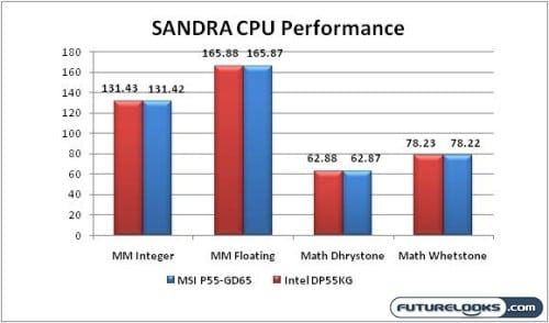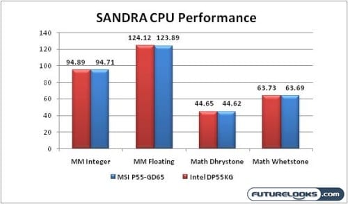 SANDRA provides a large array of benchmarks especially in regards to the CPU and Memory Bandwith since all the Core i5 and i7 Processors have integrated memory controllers. The MSI P55-GD65 will be pitted against the reference Intel platform.