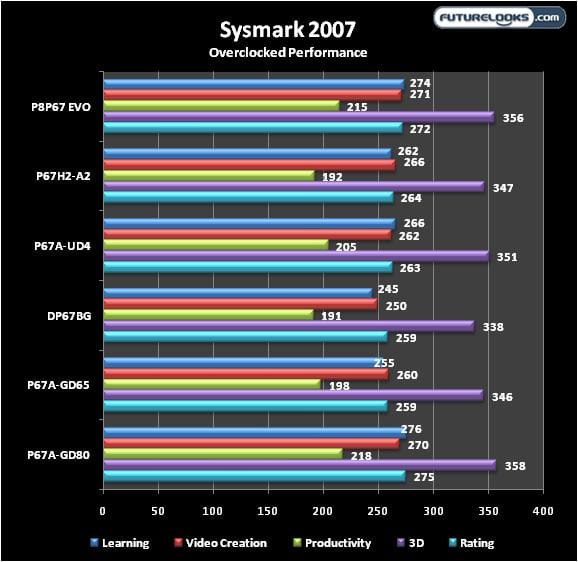 Due to its more aggressive tuning, the GD80 proved itself a solid, stable performer even when overclocked. It definitely outpaces it’s GD65 sibling as well as the rest of the boards in our tests.