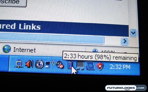 For all intents and purposes, I was able to get between 2:00 and 2:30 of battery life under normal use. The screen brightness was set at about 50%, the Wi-Fi was on, Bluetooth was off, and I was doing some mild web surfing. Your mileage will vary based on your use, but this is what I got out of the 3-cell battery. If you’re willing to fork out an extra $80 or so, MSI will outfit your Wind with a 6-cell battery instead.