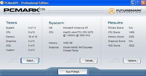 I ran the MSI Wind through PC Mark 05 to come up with the benchmarks above. It was not able to come up with a composite PCMark score, and this is because it was not able to complete the tests for the GPU. It did come up with results for the processor (1489), memory (2393), and hard drive (3922), however. It’s no speed demon, that’s for sure, and the fail on the GPU means no 3D gaming on the MSI Wind. These benchmark scores place the MSI Wind right in between a UMPC and a full notebook, which makes sense. When I ran the same PCMark tests on my Dell 640m (Core 2 Duo T5300, 2GB RAM, 945GM graphics), I got 4340 on the processor, 3275 on memory, 3354 on hard drive.