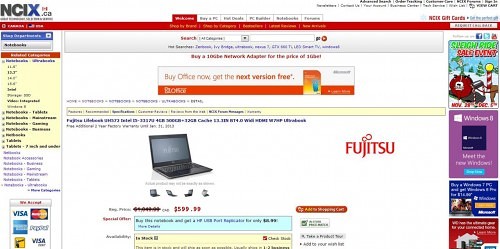 I didn’t really intend on doing any Black Friday shopping, but I was in the market for an ultrabook and a deal sprang up that I couldn’t miss. NCIX had limited quantities of Fujitsu Lifebook UH572 on sale for almost 50% off. The original regular price was a legitimate $1,049, but they were selling it for just $599.