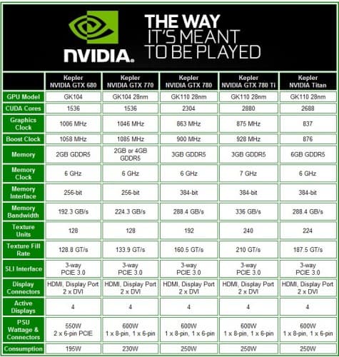 For those who are waiting for prices to come down on the Kepler series (and thanks to pressure from AMD’s recent launches), the addition of the GTX 780 Ti drops the GTX 780 to $499, the GTX 770 drops to $329, and the GTX 760 remains relatively unchanged at around $260 price point. All of which are in US dollars. The Titan still commands a $999 premium if you need the Quadro disguised CUDA processing power. This means that the GTX 780 Ti finds its home at $699, sitting right in between its predecessor and the top end Titan. But as we can see from the specs, except for the memory, the GTX 780 Ti looks like it’s ready to jump all over it.