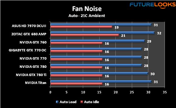Video card noise was recorded with a trusty sound meter with the CPU fans forced to very low RPMs to eliminate them as a variable. Only auto fan settings were used since they’re set by the card manufacturers. Noise was recorded running just graphically intense benchmarks. Keep in mind that only a very hot room, or extremely poorly ventilated computer enclosures will result in higher than normal RPMs.